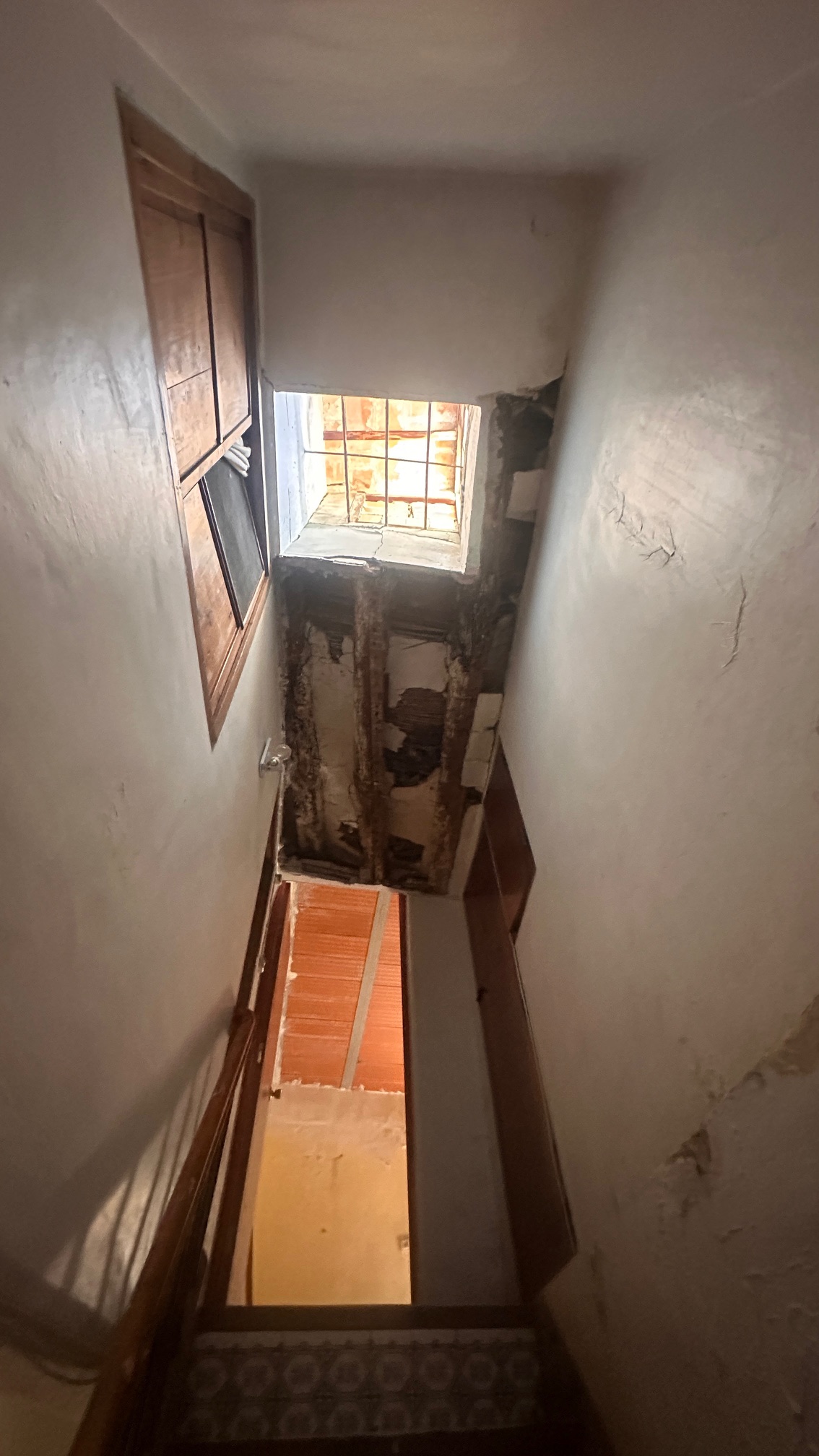 Tiene una pequeño patio y una buhardilla que da a la calle y otra buhardilla que da al patio interno.