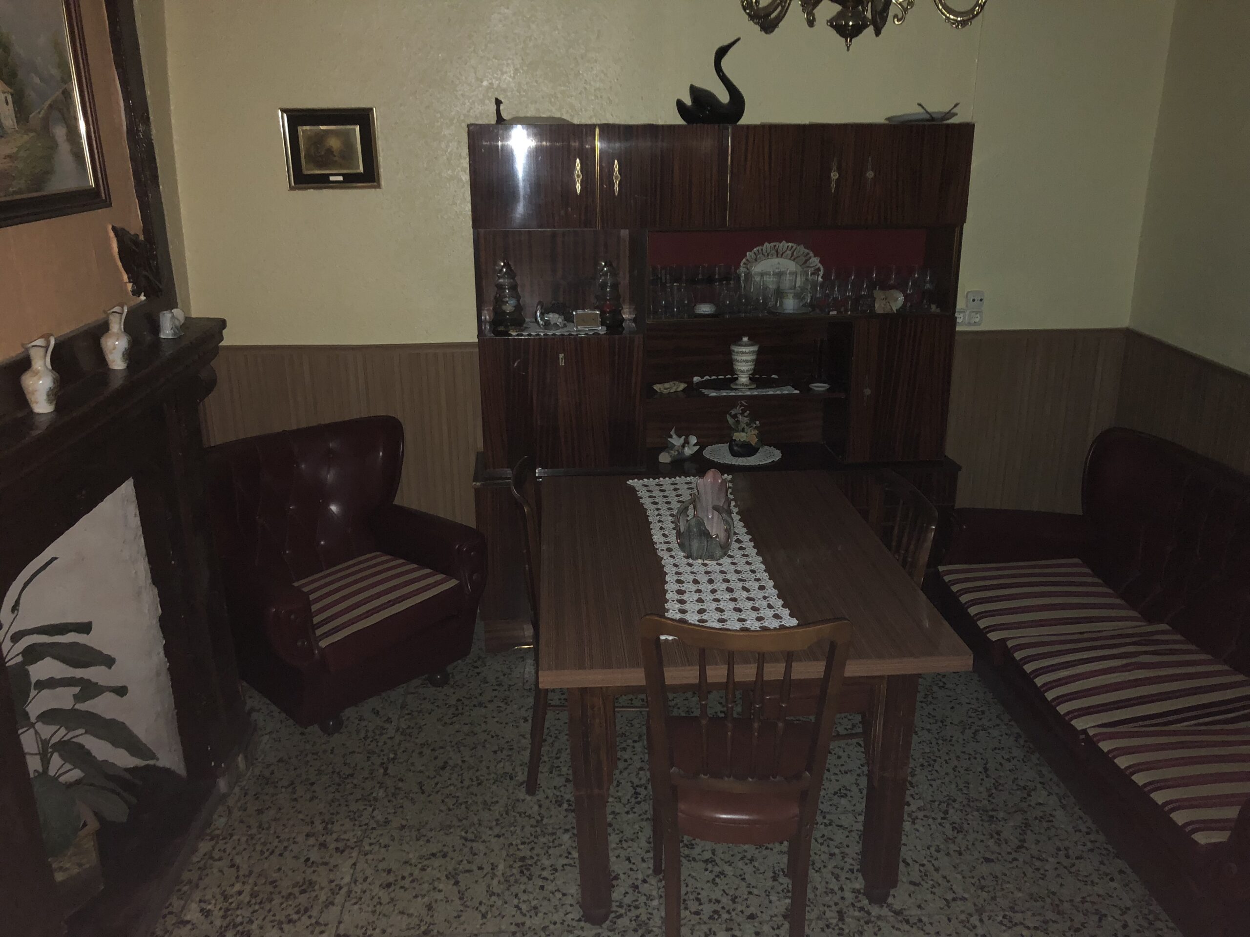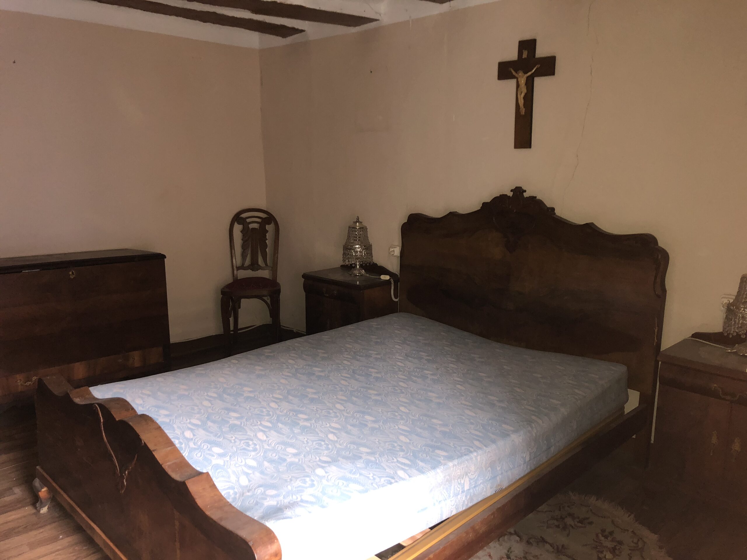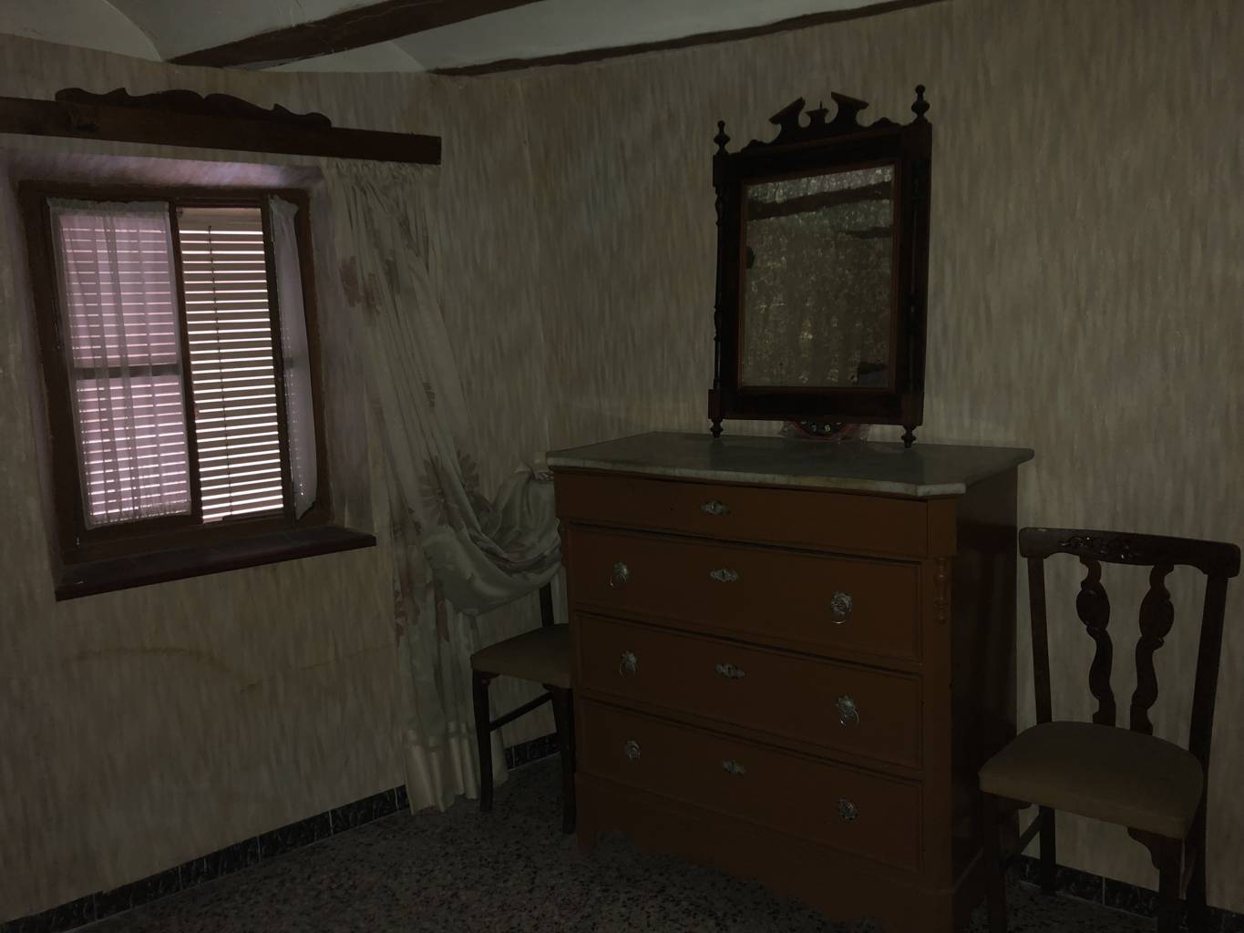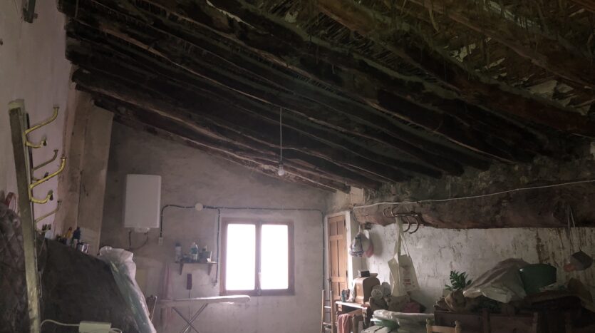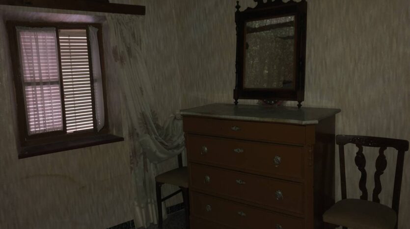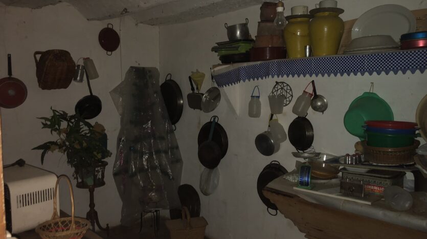 La casa da a dos calles, tiene bodega grande y en el primer piso se encuentra la entrada, la cocina con despensa, un salón con chimenea, una habitación con dos camas, la salita de estar y un baño completo con ducha.
