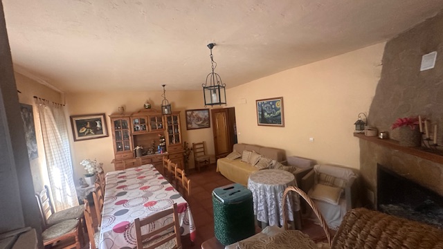 Tiene dos plantas ,con un total de dos dormitorios, cocina, comedor con chimenea, baño, cochera, cambra, barbacoa exterior.