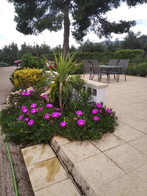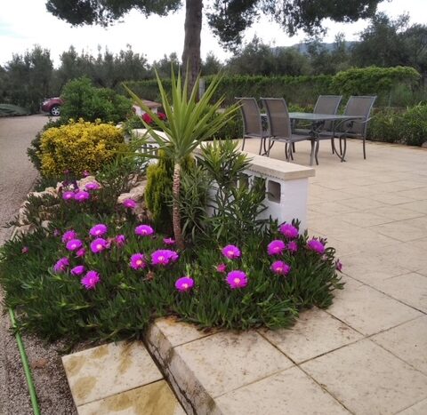 La casa tiene un jardin y zonas ya amuebladas para disfrutar con los amigos en el exterior.