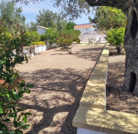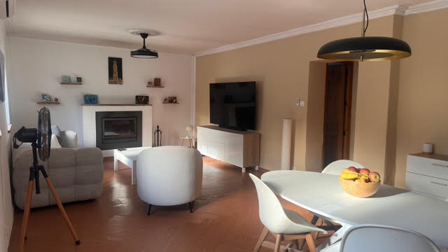 Vivienda de una sola planta con tres dormitorios y un baño, la cocina y el salon es amplio y tiene chimenea ademas de muchisima luz durante el dia.