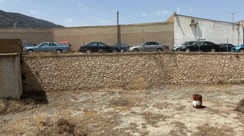 Se vende Nave con solar a la entrada Biar viniendo de Villena, con  acceso facil con carretera y con fachada a tres calles.