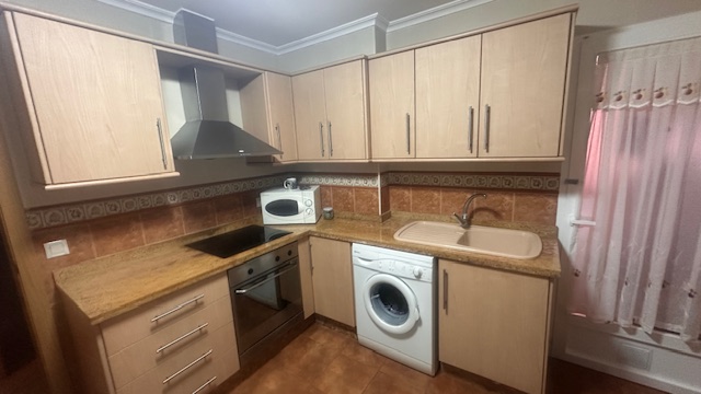 La cocina esta amueblada y equipada con electrodomesticos, dispone de un salón amplio con paso a un balcón que hace esquina a dos calles.